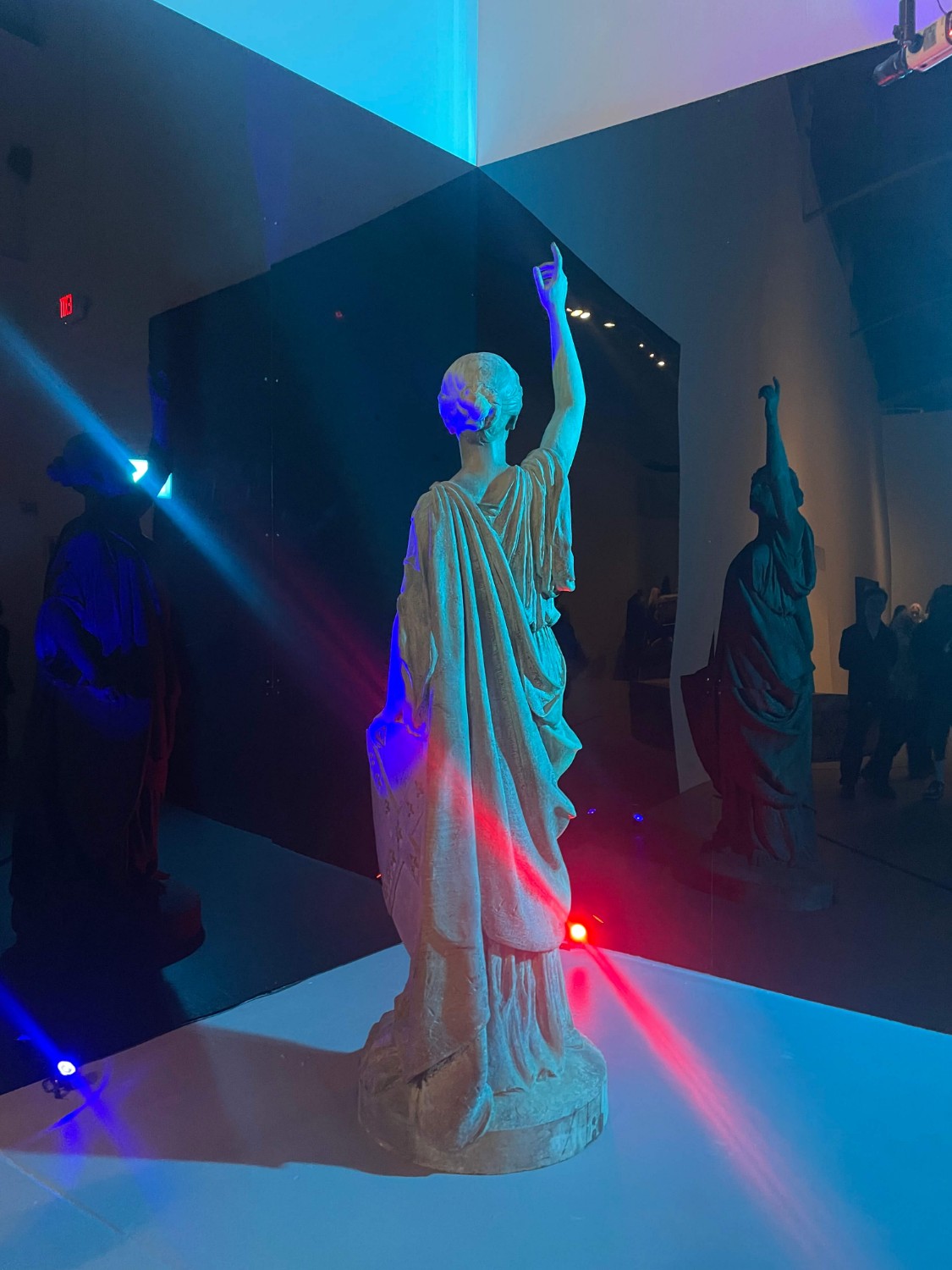 Under these guidelines, Smith said she decided to put a mirror up to the statue and place her in a corner between two walls on either side. Smith said the statue was then submerged in red, white and blue lights with a live CCTV camera pointed at her at all times, which is where the title, “The Warden,” comes from.