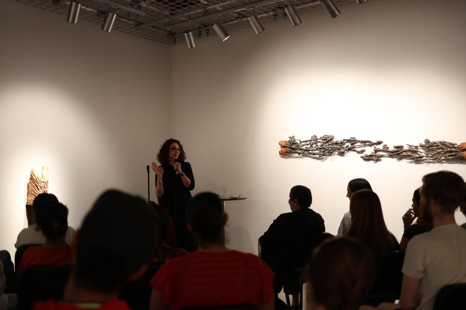 According to Assistant Professor of English Claire Grossman, the event coincided with the exhibit of 2025-26 Wanlass Artist in Residence Roksana Pirouzmand, an Iranian multidisciplinary artist.