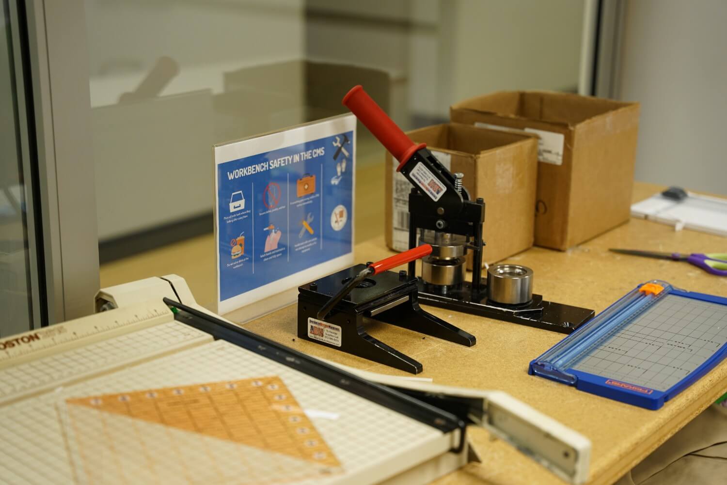 Pin maker workbench in the Critical Making Studio on the first floor of the Academic Commons at Occidental College in Los Angeles, CA. March 22, 2026. Anthony Cordova/The Occidental