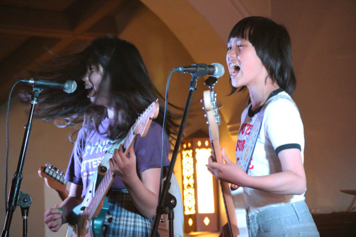 The third band, The Linda Lindas, was the youngest band at the concert series. Eloise, 12, her sister Mila, 9, their cousin Lucia, 13, and their friend Bela, 15, began performing a year ago and have since opened for famous rock bands “The Dils” and “The Ally Cats.” After asking people to stand up and dance, The Linda Lindas began their performance, with about 12 elementary school kids dancing in the front.