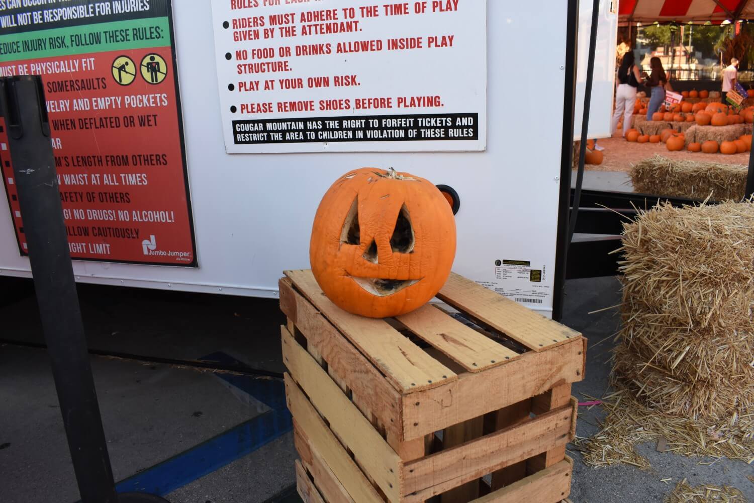 Lukas Delatoba said he likes the rides the best, especially the giant inflatable pirate ship and the blue and yellow inflatable slide toward the back of the pumpkin patch.
