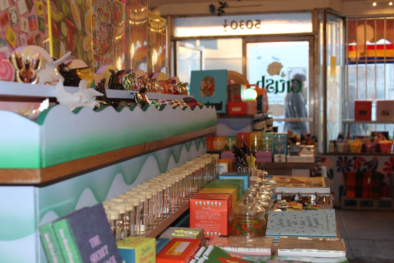 “It’s us looking to hopefully inspire play with others. So when you’re in the shop, even like our displays, we’re hoping that you have a little bit of a sense of wonder about it,” Grover said. “We look at art as a means to play — and something that shouldn’t be unattainable for someone that walks in. We want it to be very inviting, and so we just throw all the colors together and make it work.”