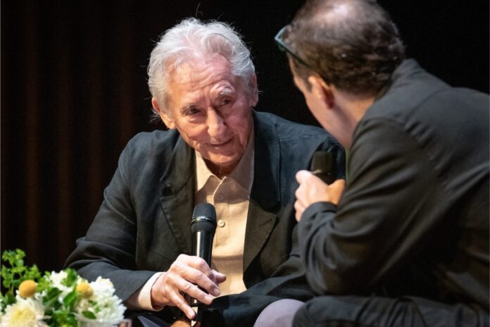 The Feb. 4 event began with an introduction by Ruscha’s grandson, Milo Ruscha (senior), followed by a clip from Holdengräber’s previous interview with director David Lynch in memory of his recent passing, garnering strong applause.