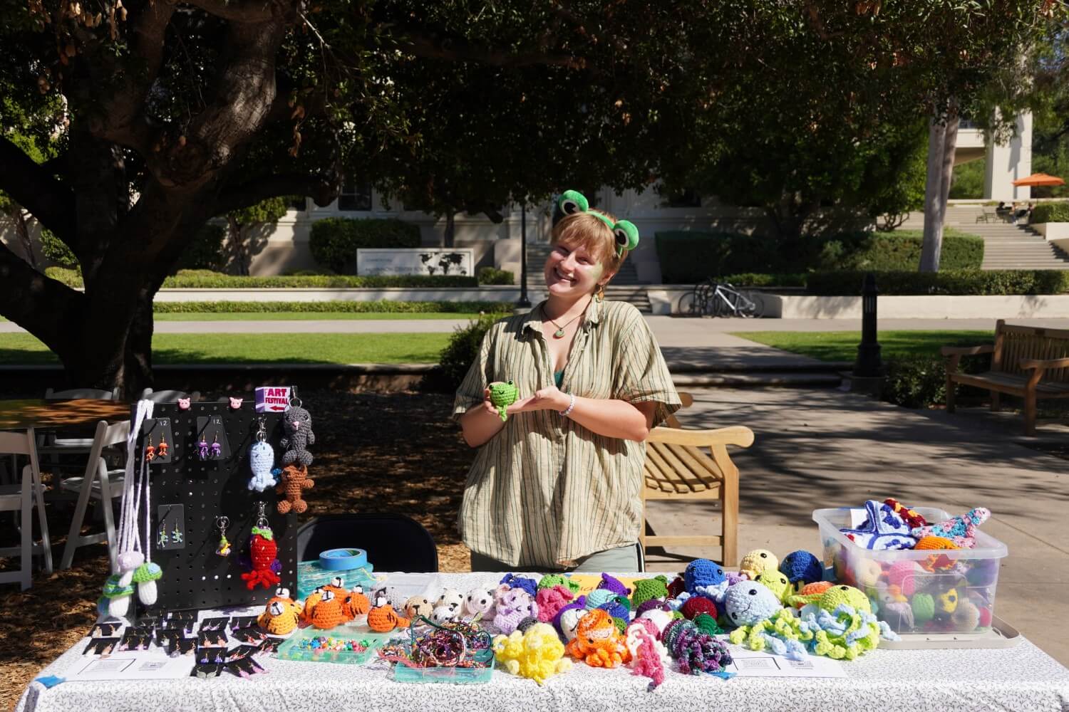 Phia Green (senior) was a vendor at the Old Market and sold their crochet creations. According to Green, SLICE has hosted craft fairs in the past, and they have been selling their artwork at SLICE fairs since their sophomore year. However, they said this event was unlike previous on-campus fairs because of the sheer number of students passing their table.