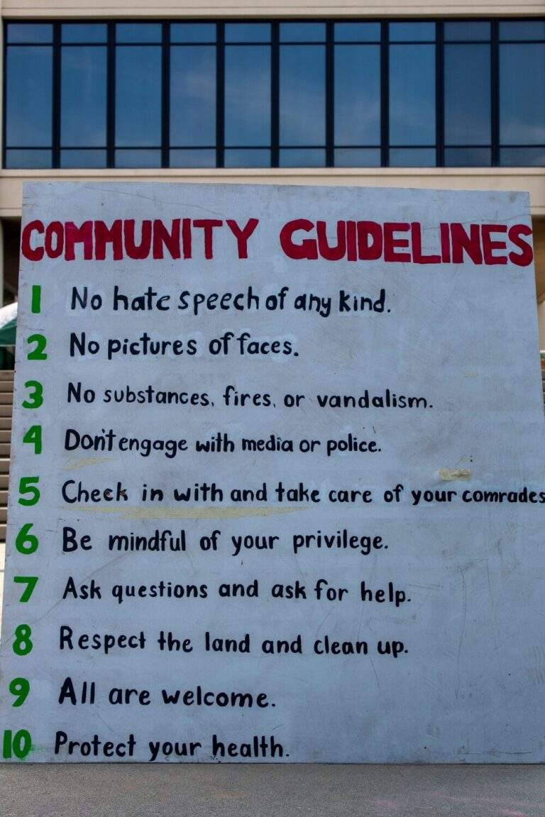 Aproximadamente 100 personas establecieron un campamento diurno en el Cuadrángulo Académico el 8 de octubre, rodeando el centro del Cuadrángulo Académico a las 11:30 a.m. y coreando: “Divulguen, desinviertan, no nos detendremos, no descansaremos.”