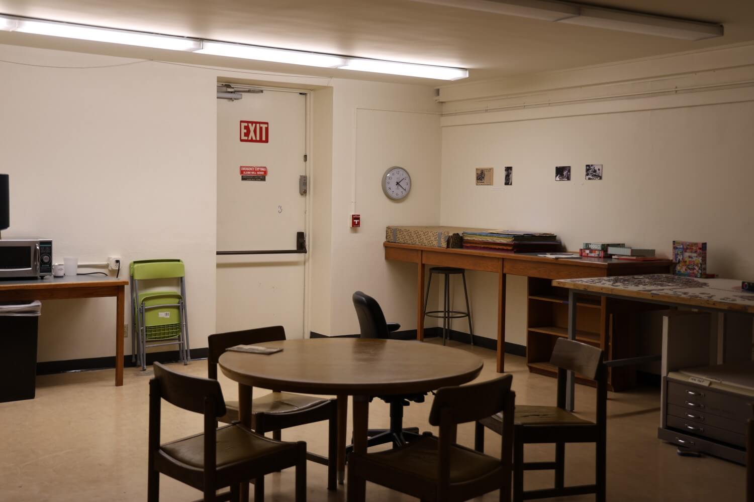 It’s on Floor -1, by the entrance to the stacks. A short hallway next to the water fountain leads into my favorite liminal space on campus — the library’s snack room. Are there any snacks in there? None that I know of. It does contain a seldomly used microwave, three sets of diner-style booth seating and a large half-finished puzzle laying on a table. Who works on this puzzle? I couldn’t say, for the majority of times I encounter the snack room, I find it empty with an air of abandonment. That feeling is imaginary — there’s a whiteboard with different writing on it most times, meaning people have been using the space to study for their exams. But I can’t escape the sensation that the snack room appears when I walk in and disappears when I walk out.