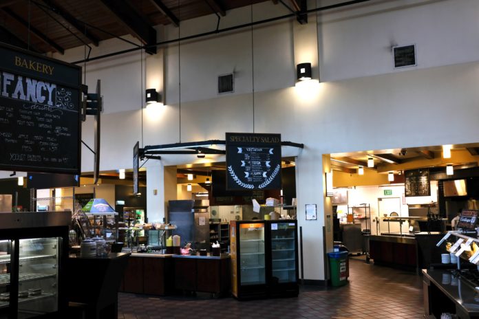 Ever since March 19, when Occidental closed the Cooler, the College moved all dining services to the Marketplace. With only about 200 students remaining on campus as of April 1, the Marketplace is now overrun by staff in black caps, white chef hats and work suits, like the stones in the game of Go. The sandwich station is now joined by two fridges from the Cooler, and the snack shelves are stocked with newcomers: chocolates and energy bars. Music is constantly playing, and staff are chatting, laughing and dancing tentatively. The Marketplace is now the most social place on campus, replacing the quad as the center for all in-person exchanges.