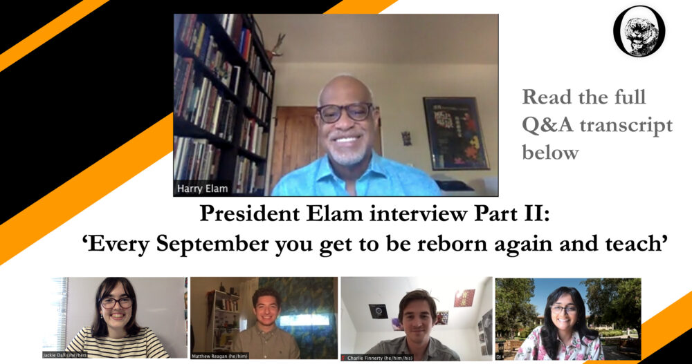 Harry J. Elam Jr. became Occidental’s 16th president July 1. The Occidental’s Editor-in-Chief Jackie Dall (senior), Managing Editor Charlie Finnerty (junior), Community News Editor and former Editor-in-Chief Matthew Reagan (senior) and Opinions Editor DJ Prakash (sophomore) met with Elam for a question-and-answer period via Zoom Sept. 4. This interview was edited for length and clarity and is published in two parts. This is Part II, read Part I here.