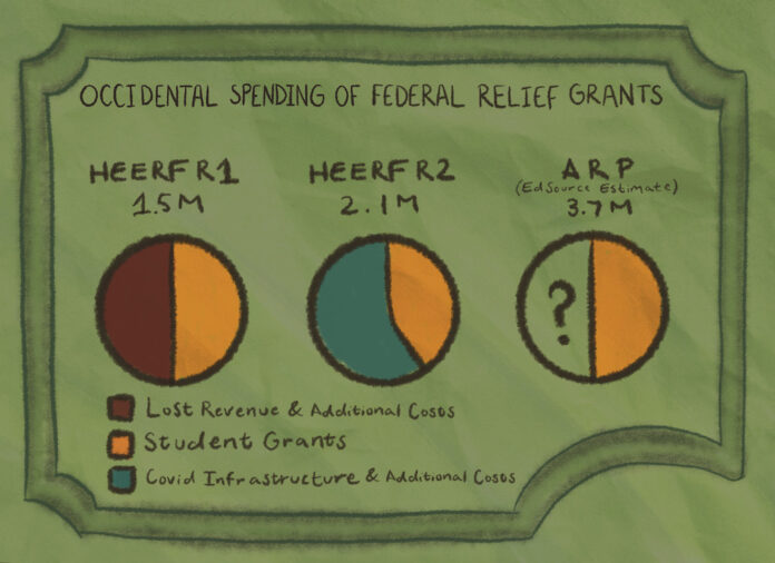 Over a year after transitioning to online instruction, COVID-19 continues to heavily effect Occidental, lowering the number of students on campus, creating new costs and removing a significant portion of the revenue the college would receive in a typical fiscal year. According to Vice President and Chief Operating Officer for Finance, Planning and Operations Amos Himmelstein, Occidental is now set to receive its third round of government aid as part of President Biden’s American Rescue Plan. Himmelstein said the College has received two rounds of government funding, beginning with the Higher Education Emergency Relief Fund (HEERF) from the Coronavirus Aid, Relief, and Economic Security (CARES) Act I last spring.