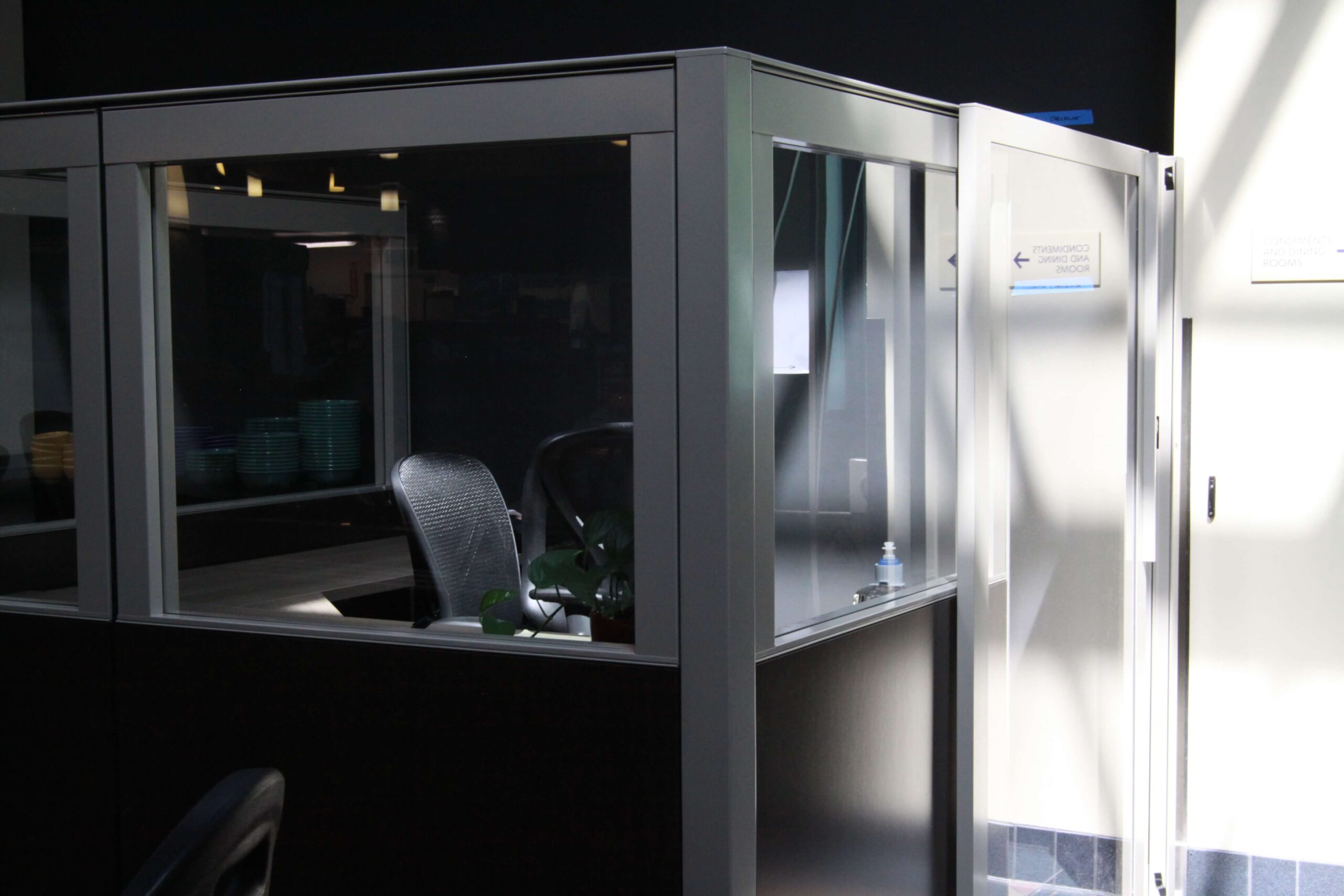 Russell said the new cubicle next to the checkout lines at the Marketplace is a workspace for service managers and was implemented to allow them to engage with people on the floor more easily. Russell said that the design was inspired by the Writing Center.