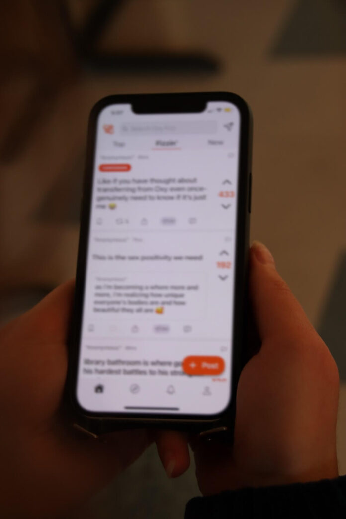 Since its launch at Occidental, the app has experienced a surge in popularity along with ample backlash. Fizz allows students to upload all sorts of posts, such as polls, confessions, upcoming campus events and more. One feature is the ability to upvote or downvote another student’s post, similar to Reddit. The posts that garner the highest number of upvotes get ranked on the app in a section titled “Top.” As of Feb. 5, a confession that reads “Like if you have ever thought about transferring from Oxy even once- genuinely need to know if it’s just me” has the most upvotes across the app, surmounting over 595 upvotes.