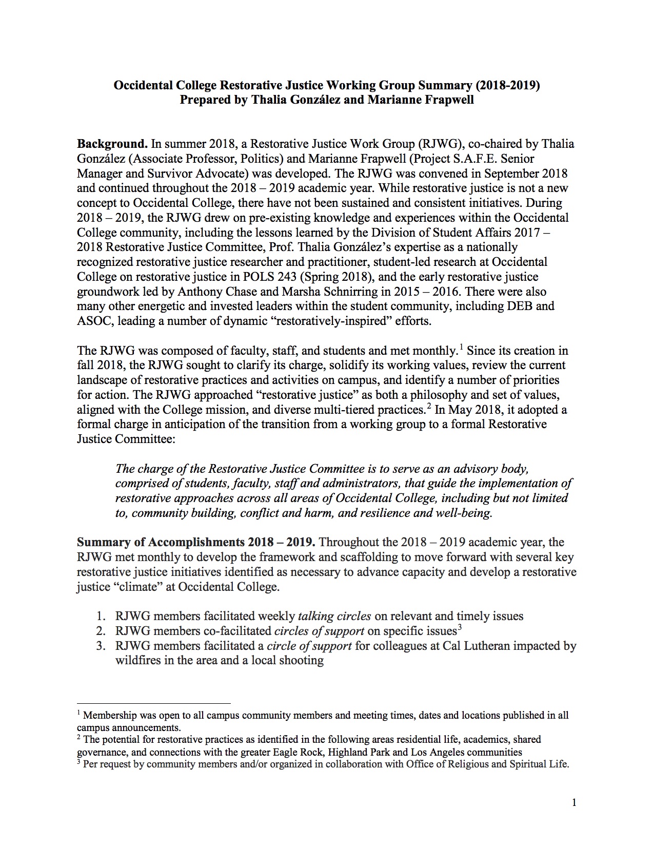 Occidental College Restorative Justice Working Group Summary Final
