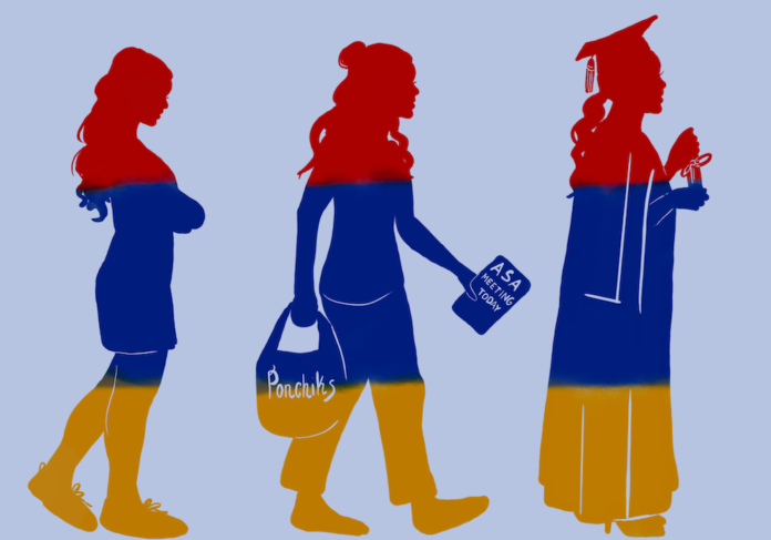 I grew up in Armenian schools and in the Armenian community, where language, history and traditions are introduced to you from the moment you are born and again when you first start school. We had separate class periods for Armenian language and another one for Armenian history, from preschool to 12th grade. I was surrounded by Armenian people every day, whether that was in school or in the social events I would attend. Then, all of a sudden, I walked into a new space where people essentially asked me who I am. I struggled with how I was going to explain my identity to someone who had never even heard of the country. How would I explain everything there is to know and do my people justice? I was a stranger in my new “home.”
