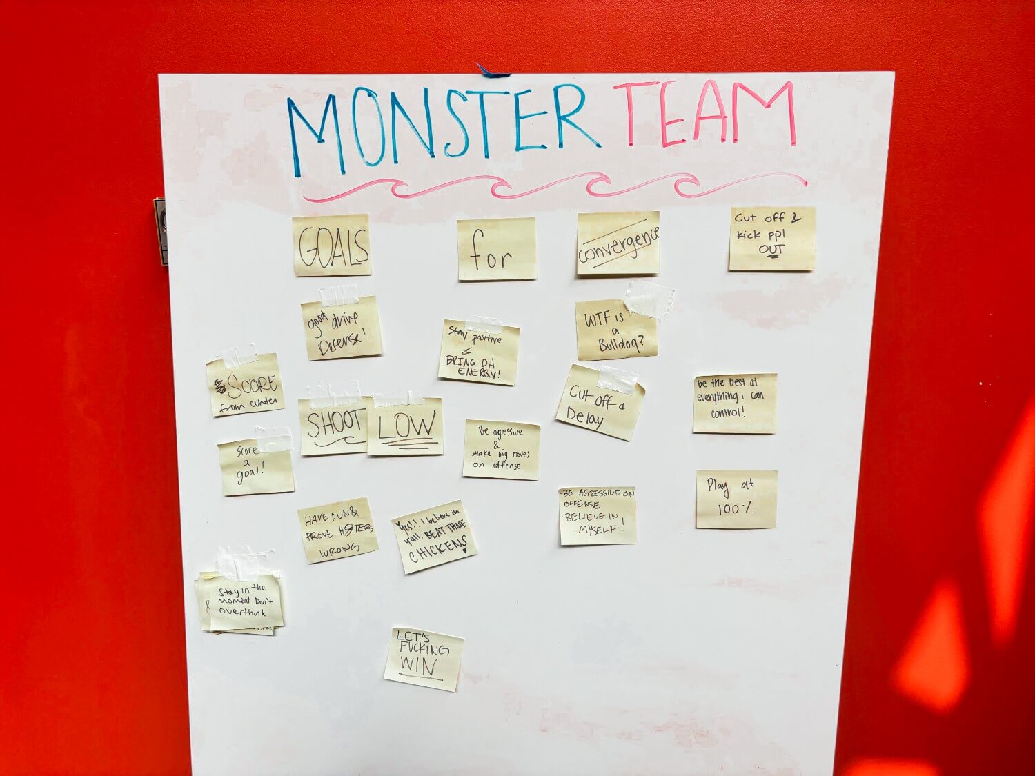 Pre-game rituals are not lacking when it comes to the women’s water polo team. In their team locker room, a whiteboard reads ‘MONSTER TEAM’ written in red and blue marker. Below it, phrases like ‘Score a goal!’ and ‘Believe in myself!’ are scribbled onto Post-it notes and taped to the board. A tradition that started last year, Ruby Vogel (junior) said writing out her goals helps clear her head and lessens pre-game pressure.