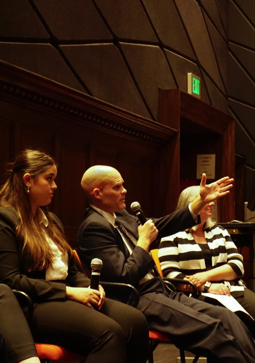 Facing rows of students with notepads and bright computers, 9th U.S. Circuit Court of Appeals Judge John Owens sat beside his three current federal law clerks. On a visit to Occidental’s Choi Auditorium Nov. 8, Owens gave a few minutes of background about his career in law before diving into a full hour of student Q&A.