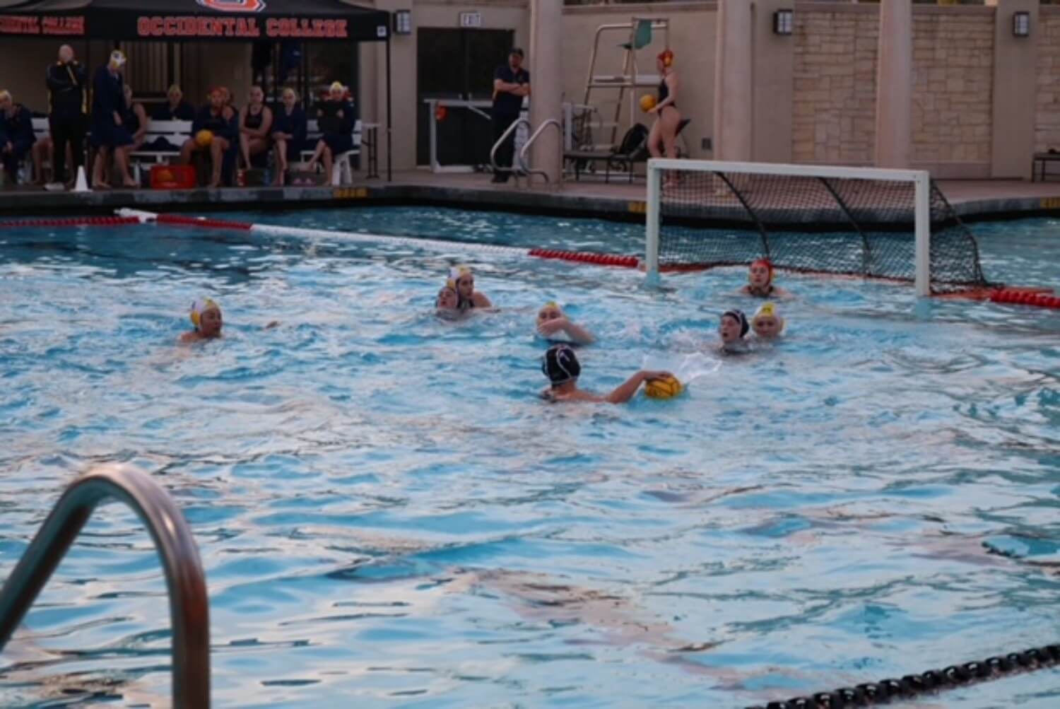 Women’s water polo center Emma Wilderman led the Tigers to a 14-11 win over the Austin College Kangaroos Feb. 15. She scored three goals.